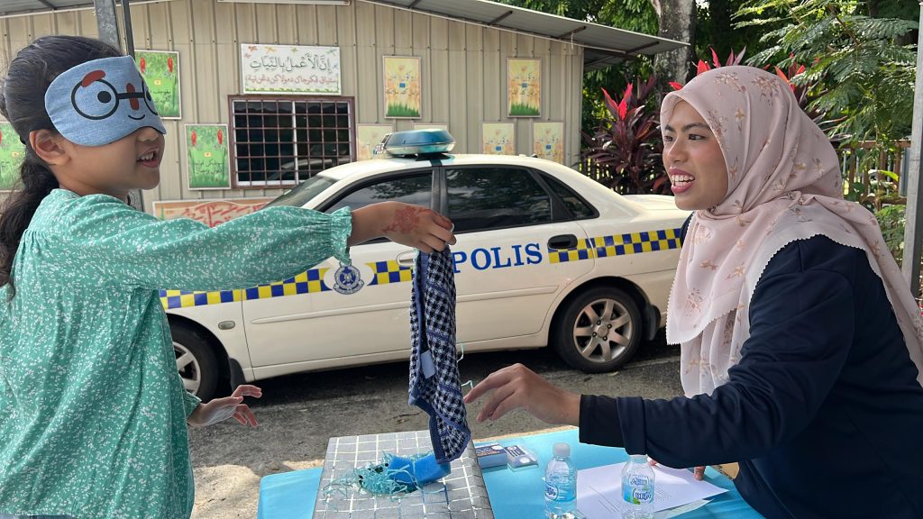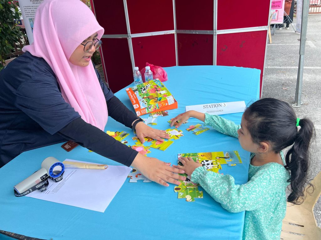 Ada enam stesen kesemuanya, termasuk teka objek dalam kotak misteri, meneka bahan menggunakan deria bau, menyusun puzzle, menguji kekuatan tangan, kestabilan, dan ketahanan otot. Azra, walaupun kecil, semangatnya besar. Dia mencuba setiap cabaran dengan bersungguh-sungguh. Puzzle diselesaikan dengan mudah, dan deria baunya β€” walaupun keliru antara halia dan serai β€” tetap diberi pujian!.
