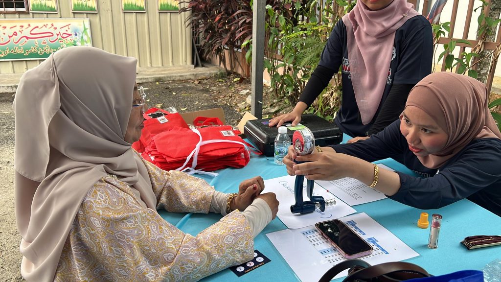 Saya singgah di booth saringan kesihatan percuma. Tekanan darah, BMI, dan gula diperiksa oleh petugas yang muda-muda dan sangat mesra. Sambil menunggu giliran, saya sempat berbual dan belajar tentang pentingnya pemantauan kesihatan berkala, terutamanya apabila usia makin meningkat.